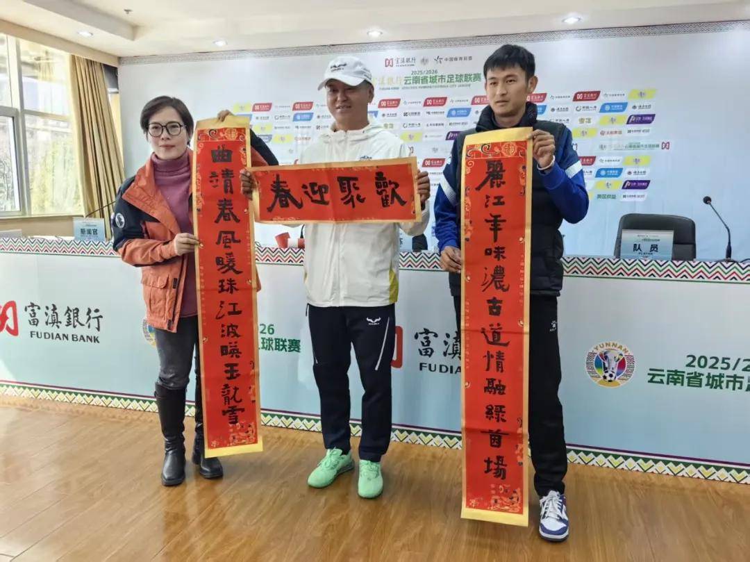 发布会尾声,远道而来的曲靖融媒体中心代表还为丽江队送上了一份特别的祝福,一副爨文化的爨体书法春联,既为明日的滇超对决送上美好期许,也向丽江队及丽江人民提前致以新春的祝福。这份跨越赛场的情谊,为“丽江高原雄鹰”与“曲靖麒麟猛将”的巅峰相遇,增添了一抹温暖的节日底色。
